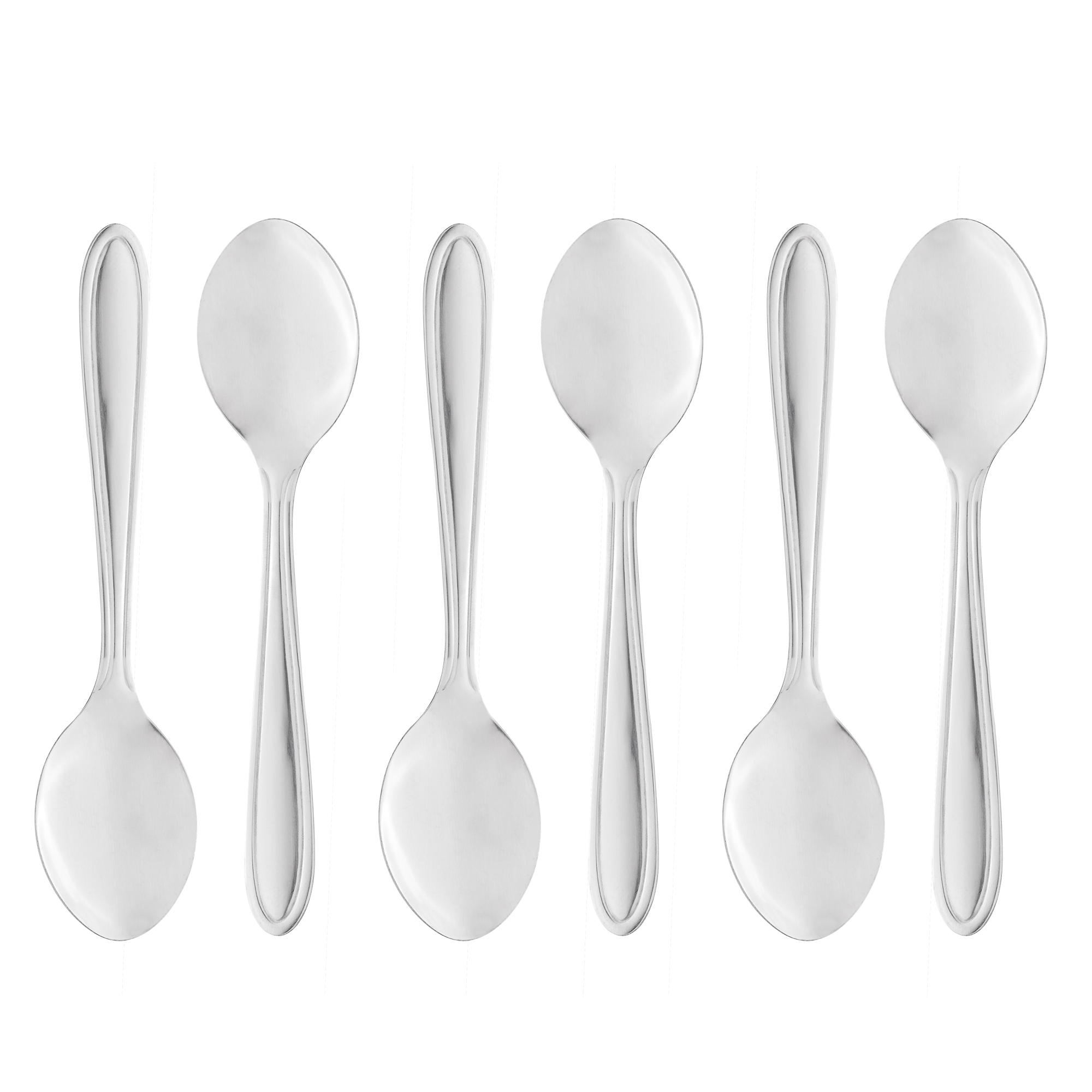As colheres apresentam um design elegante e contemporâneo, com acabamento em aço inoxidável e tamanho ideal para sobremesas.